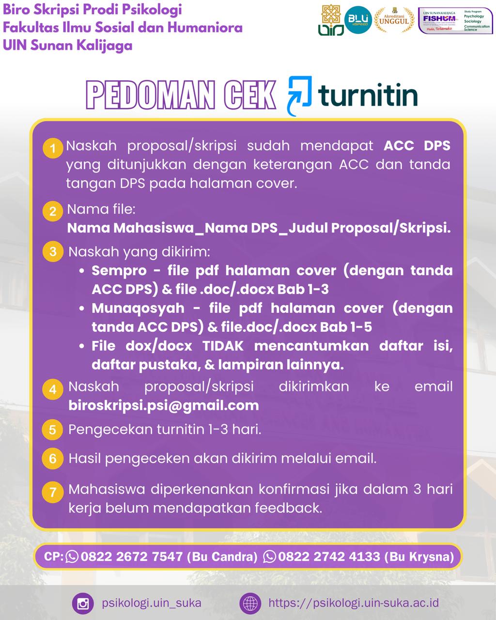 Pedoman Cek Turnitin bagi Mahasiswa Psikologi UIN Sunan Kalijaga Yogyakarta Senin, 10 November 2025 15:04:18 WIB Dilihat : 272 Kali Unduh